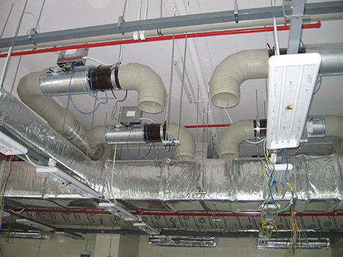 5) 實驗室風管在選擇防腐蝕較好,硬度高的材質。本工程涉及到所有風管均可采用防腐蝕性能好的PVC/UPVC材質,風機全部為腐蝕性能好的玻璃鋼風機。